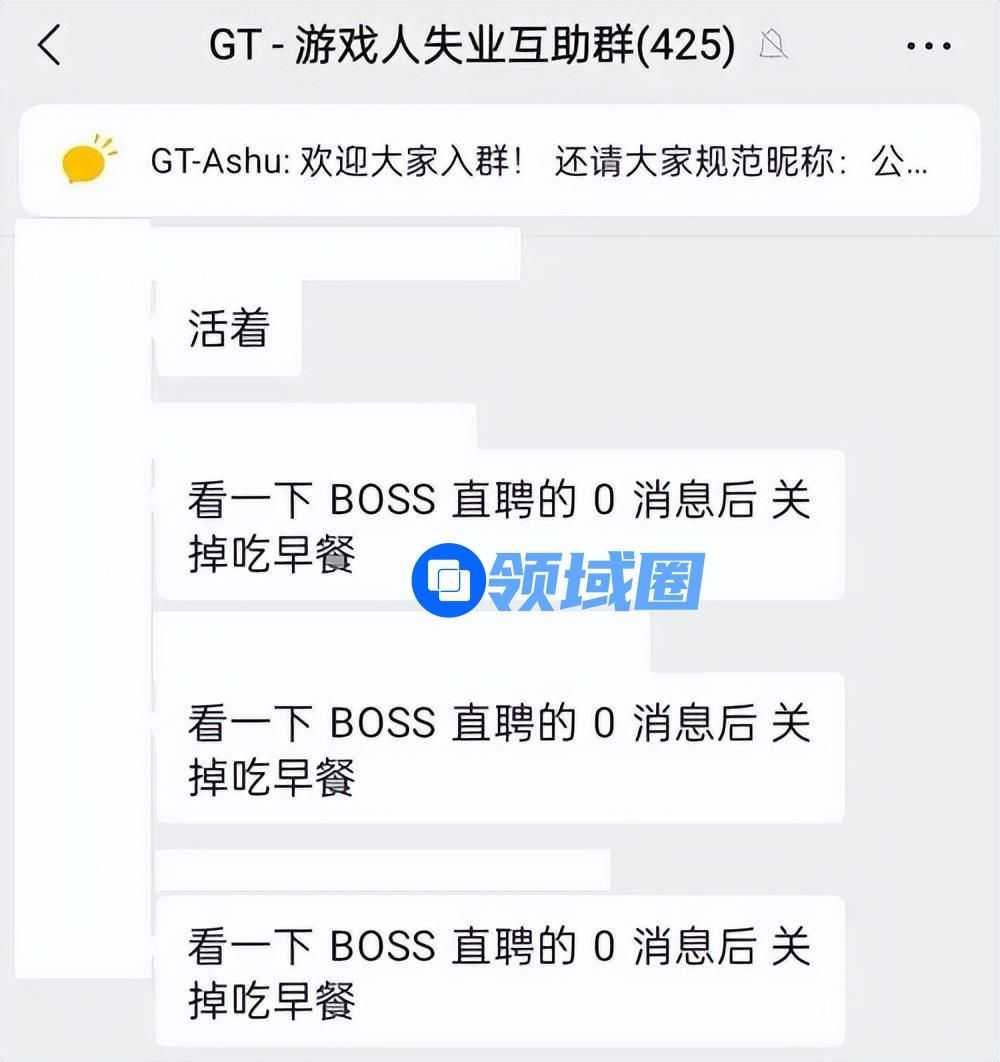 看着焦虑的游戏求职者,投资机构GameTrigger拉了一个“游戏人失业互助群”,一天不到的功夫,微信群人数已突破400人。群友们纷纷戏言“原来大佬都和我一起失业,那就安心了。”