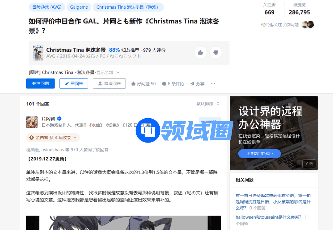 其实不管是大组还是小组,开发者加入文字AVG业界都带有着一定偶然性,如《泡沫冬景》的制作人古落,早期从事策划展会之类的工作,机缘巧合之下结识了知名编剧片冈智,两人在交流过程中渐渐萌发了《泡沫冬景》的原型。