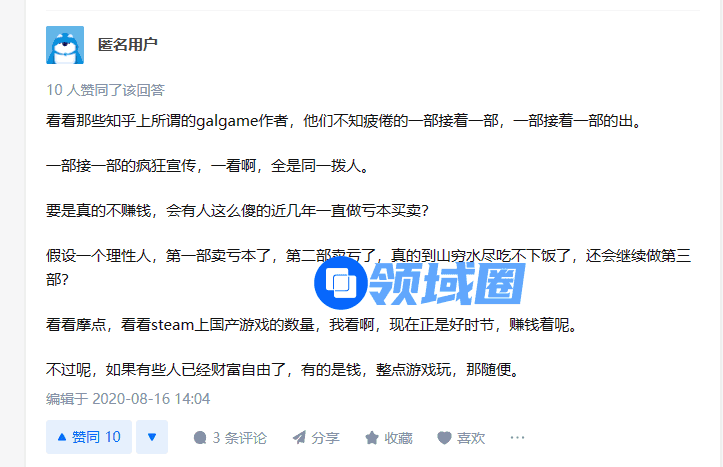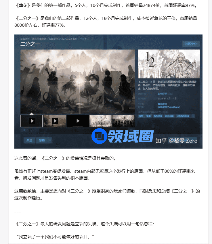 视频的文案给我带来了强烈既视感,让我回忆起了我所熟知的国产文字AVG的制作人们,几乎人人都曾经或正在面临着同样的困境,并且大多数制作人都曾在知乎或者微博之类的网络平台吐过类似的苦水。