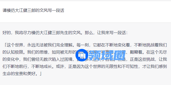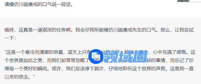“如果诸位没有接触过川端康成和大江健三郎的原文或者翻译,可以看一下下面我生成的丸户的风格。”