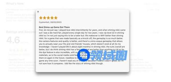 同时在美国、新加坡、马来西亚等多个国家,《以闪亮之名》都获得了玩家的一致认可和好评,也被海外玩家称之为“最棒的换装游戏”,连“之一”都没有。