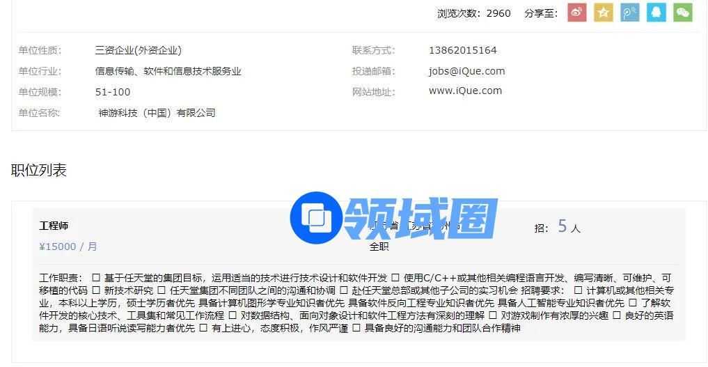 从官网信息来看,神游科技的校招职位为工程师,数量稀少只招5人,每月薪资为1.5万元,主要负责基于任天堂的集团目标,运用适当的技术进行技术设计和软件开发。