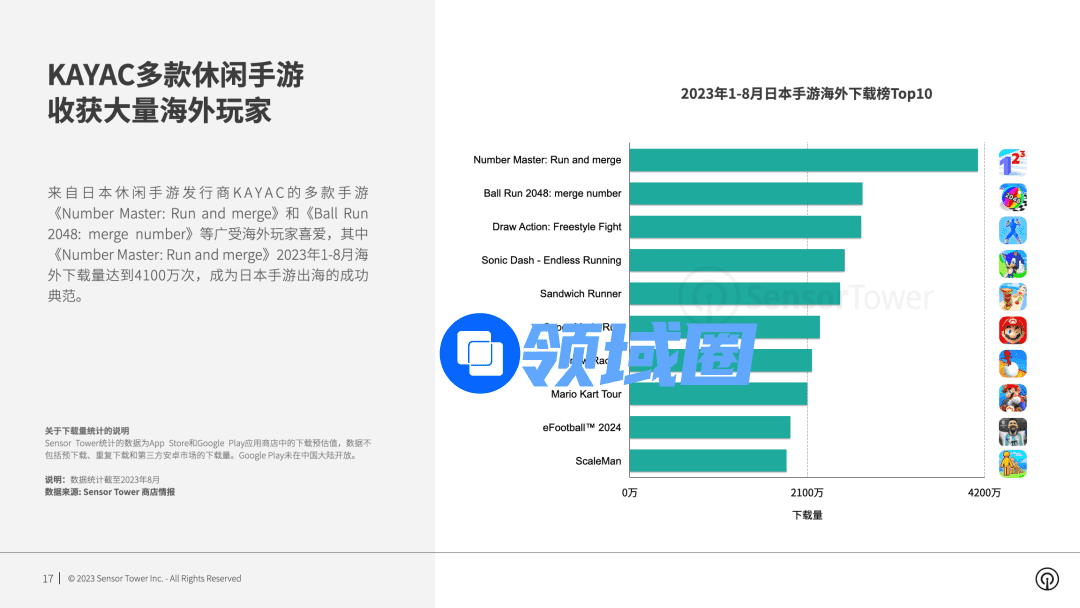 日本休闲手游发行商KAYAC的多款游戏《Number Master: Run and merge》和《Ball Run 2048: merge number》等广受海外玩家喜爱,成为本土手游出海的成功典范。