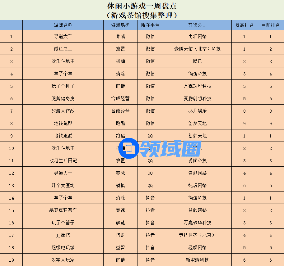 休闲小游戏:《玩了个锤子》多平台登榜,《开个大医坊》登上榜单前列