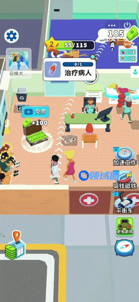 《开个大医坊》是一款模拟医院经营的游戏,在游戏中,玩家需要根据引导解锁各种设备,为患者看病开药,获得金钱奖励,然后可以花费金钱去解锁更多设备,招聘更多医生和护士,来提升医院的工作效率和收益。