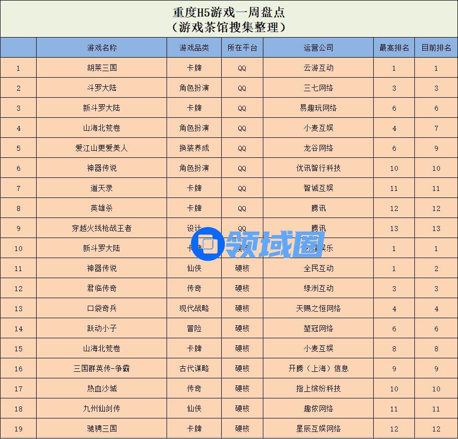 重度H5游戏:《胡莱三国》登顶魁首,《英雄杀》重回榜单前列