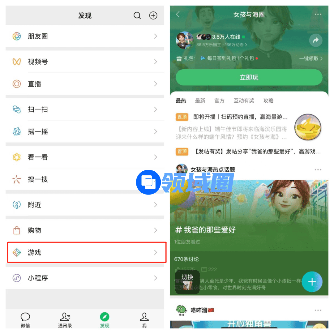 游戏圈作为微信官方的内容社区,为小游戏衍生内容提供了一个全新阵地。借助这一阵地,开发者可以在微信游戏、服务通知、用户搜索等更多场景,触达潜在核心用户群体,社区中聚集的游戏衍生内容,也将进一步提升用户发现游戏率和游戏的用户转化率。