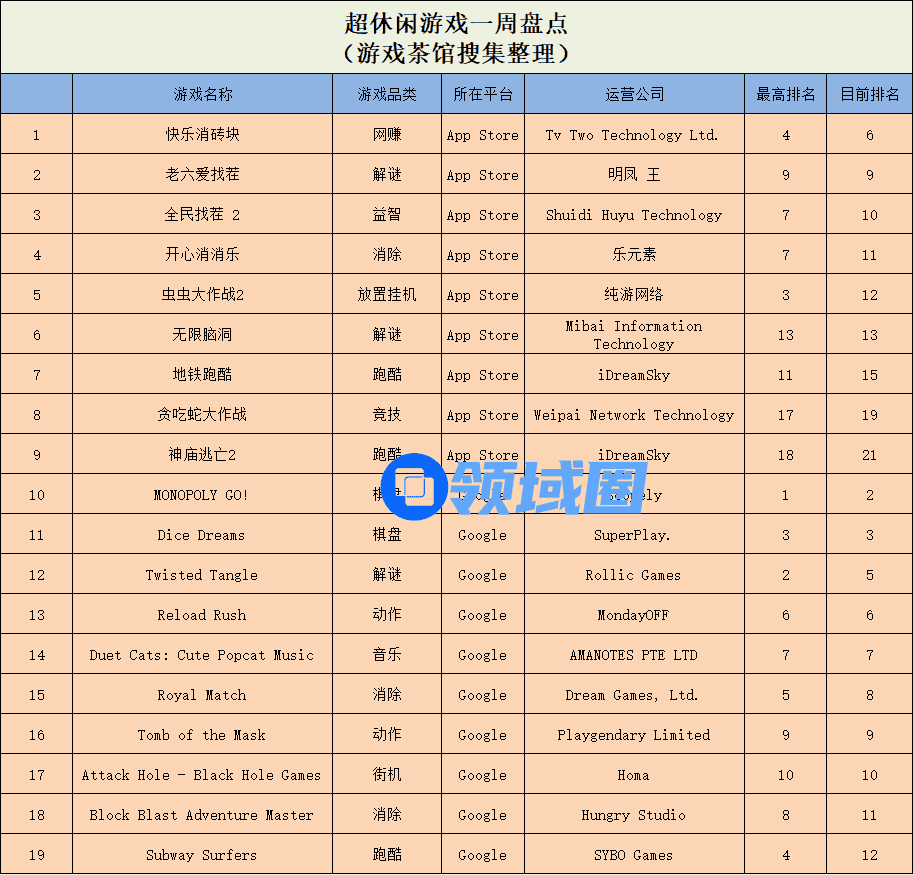 超休闲游戏:《虫虫大作战2》空降榜单前列,《Dice Dreams》跻身TOP3