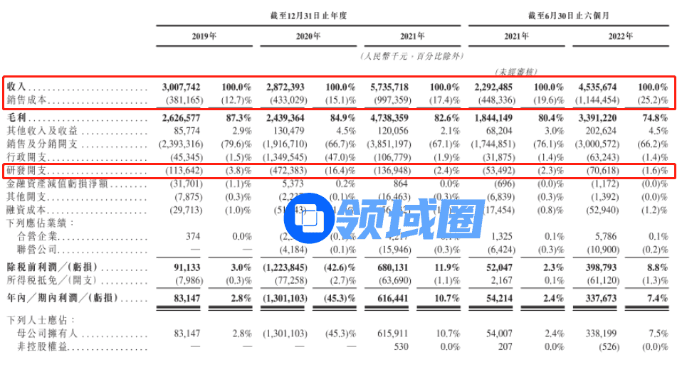从资金分配角度来看,中旭未来似乎也并没有“诚心”转型自研,在统计期内,公司研发费为1.14亿元、4.72亿元、1.37亿元及7062万元,分别只占到了总收入的3.8%、16.4%、2.4%、1.6%,这与动辄几十亿的销售费用相较,可以说是十分“抠门”了。