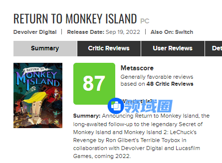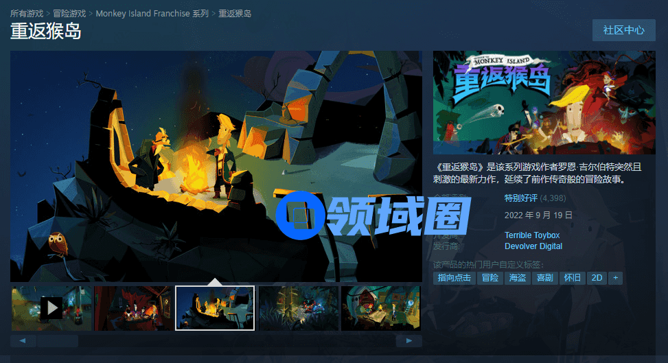 我虽然不是《猴岛小英雄》的忠实粉丝,不过对于这个经典的IP也早已有所耳闻。《重返猴岛》作为横跨30年的经典续作,在推出之后迅速在M站拿下87的超高评分,而在Steam平台也获得了93%的好评。不过有意思的是,在近4400个评论中,中文评论只有11个,占比不到1%,也就是说99%的国内玩家可能都没有机会接触这款颇有魅力的游戏。
