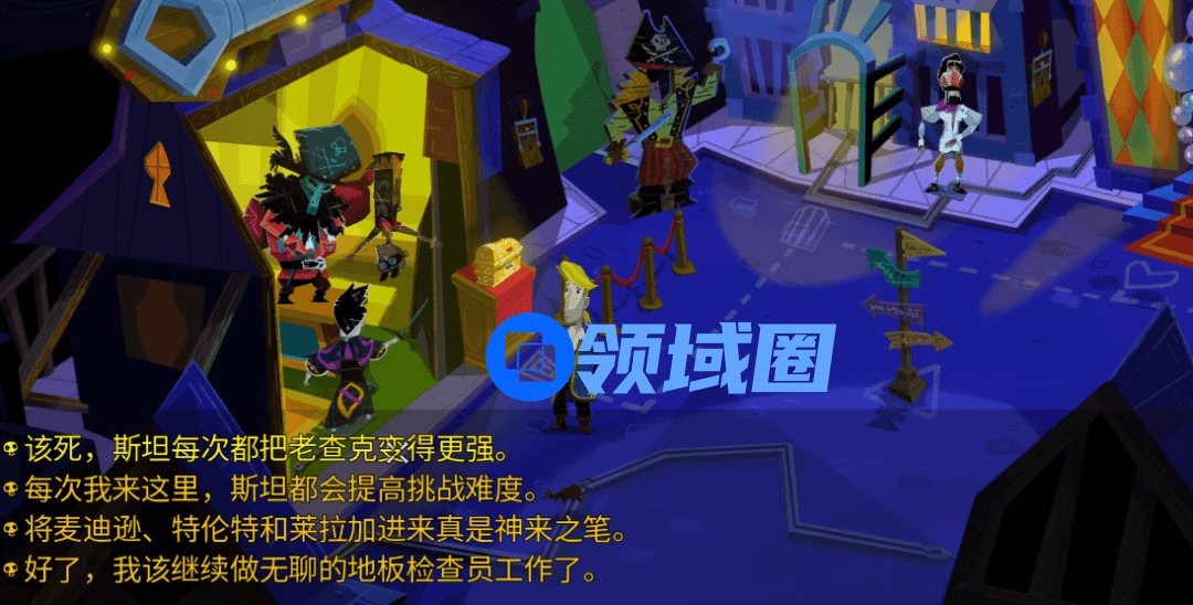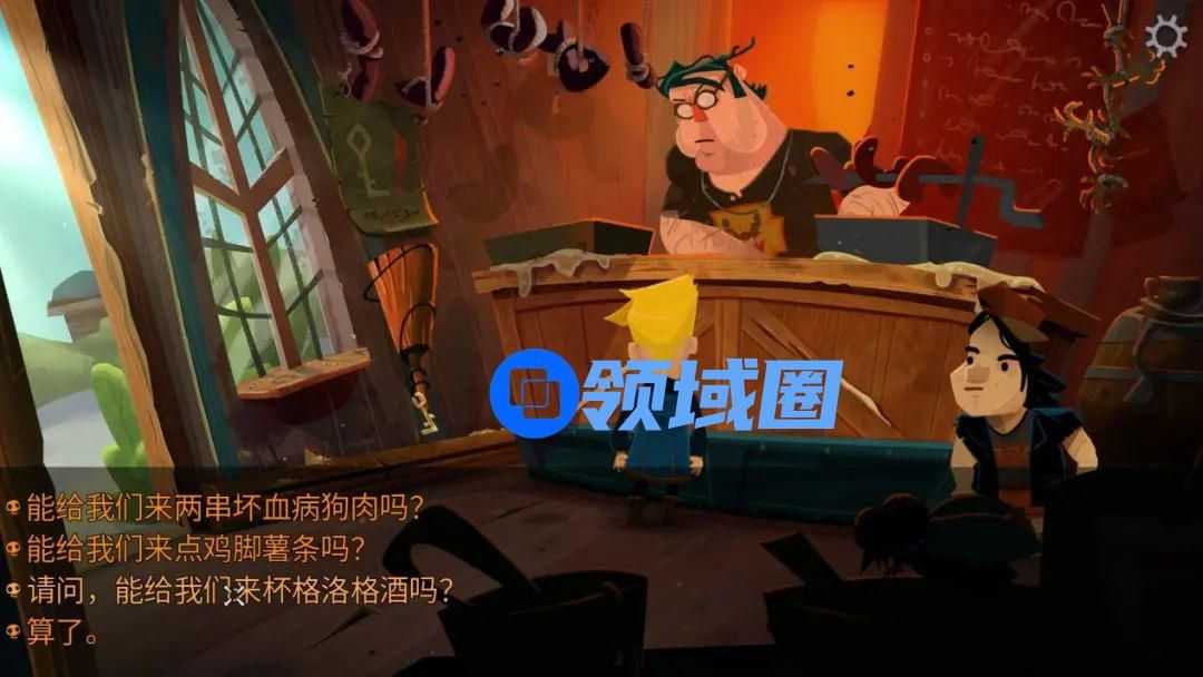 是不是听上去头皮发麻?可以说《重返猴岛》保持了老派游戏的硬核魅力,我经常会遇到卡在某个谜题上而无所适从,并不是我不会去解这道谜题,而是因为没有通过探索去触发这道谜题的答案。这样过于“老道”的解密玩法能够在玩家突破某项谜题时给与巨大的成就感,也会让不少萌新玩家随之被劝退。