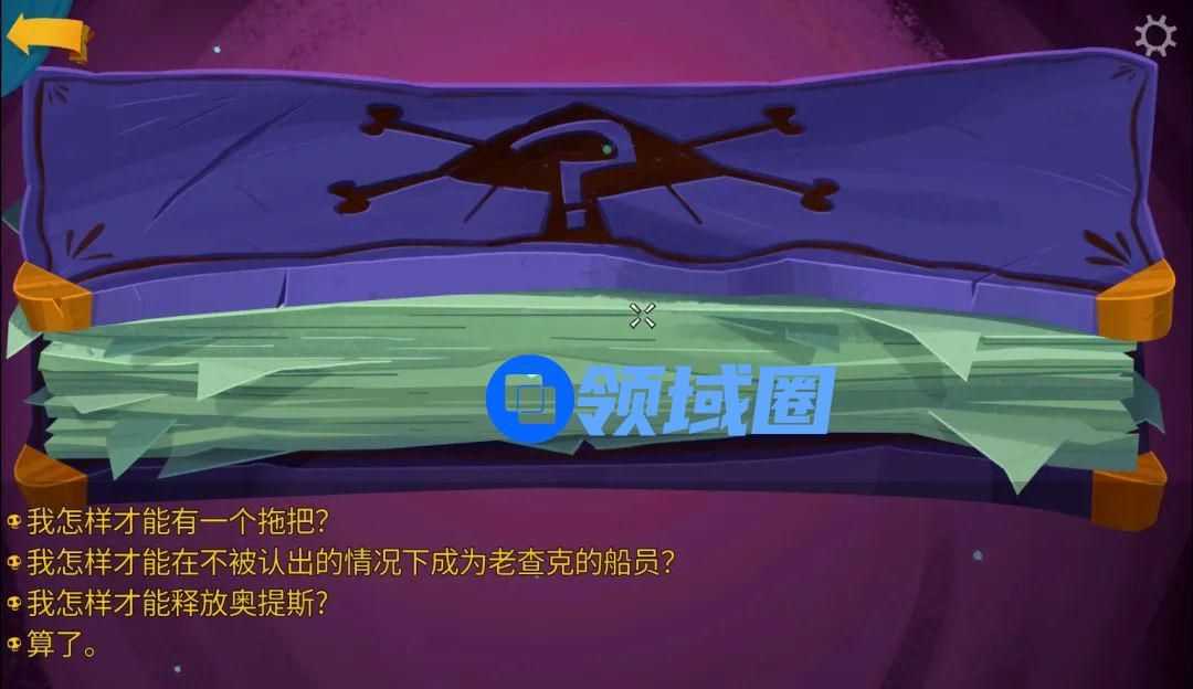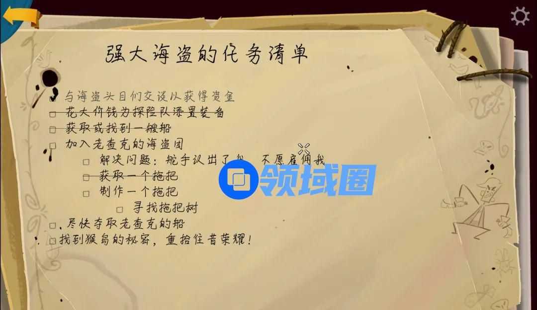 在任务从需要一条船到搭上老查克的船之后,玩家发现自己的目标也随之转变,想要上船首先你得去搞个拖把(是的,这游戏就是这么的无厘头),那么怎么能搞一个拖把呢?去厨房的厨师那里硬抢肯定是不行的(别问我为什么知道),于是你探索了一阵走到了地图商店,最终得知你需要一块木头,然后再艰难获取了地图之后(谁玩谁知道),最终在深林深处获得了那块神秘的拖把木头。