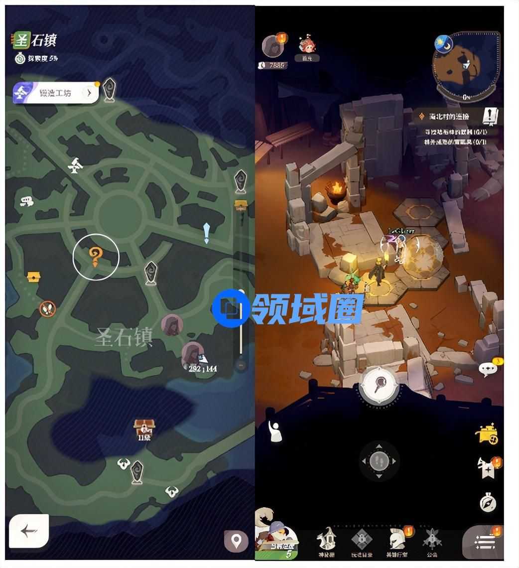 在加入地图探索这一维度后,整体上看,AFK2的玩法呈现也变得更加丰富。在一如既往的放置(放置寻路和放置战斗)基础上,AFK2的呈现不再是关卡制,而是由剧情任务推进主线。在剧情的引导下,玩家可沿路与场景丰富要素互动,包括点亮传送石、开宝箱,玩家还能通过战斗或推动石头扫去路障、驱散迷雾。而在这过程中,玩家也能看见彼此,并能实现简单互动。可以发现,在加入地图探索要素后,AFK2的玩法引导从数值转向了剧情体验。