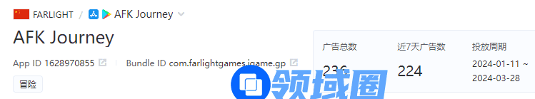 在买量上,据Appgrowing国际版 ,AFK2双端在近7日共投放236条广告素材,其中法国、墨西哥、美国地区占比最高。