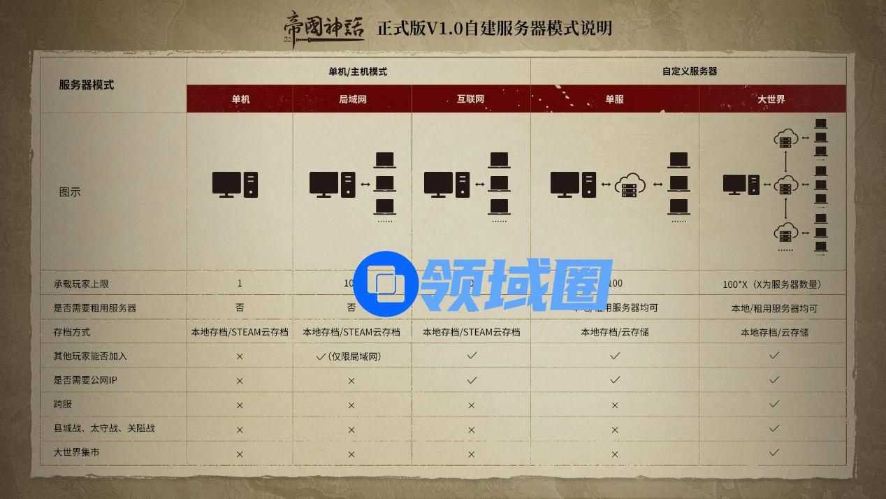除了官方服务器外,《帝国神话》正式版V1.0还将全面支持单机、局域网、单服、大世界服务器组等5种自建服务器模式,提供更多自建选择。官方服务器还将新增大洋洲和南美服务器,以满足更多区域玩家的需求。