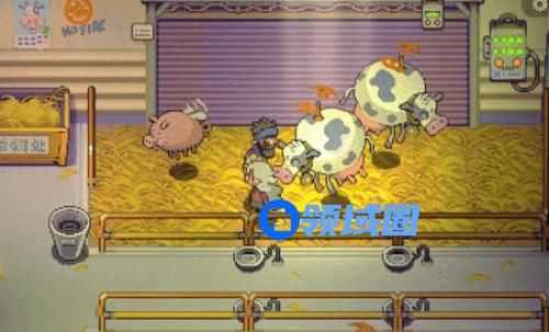相比《风来之国》中各种配色大胆、造型怪异的生物和设施建筑,海鸥镇的视觉风格抚平了本篇末世特色的异化感,以更加和谐的配色和不乏萌点的创意细节设计烘托田园生活的小确幸。野外神秘的洞窟不再通往展列着怪诞培养皿,启动黑潮的人类工厂,而是指向开启自动化炸矿小游戏的丰富矿藏。沼泽湿地也不再有发动突袭的变异水生怪物,取而代之栖息的是憨态可掬的飞猪和噗通落入池塘的雨蛙...