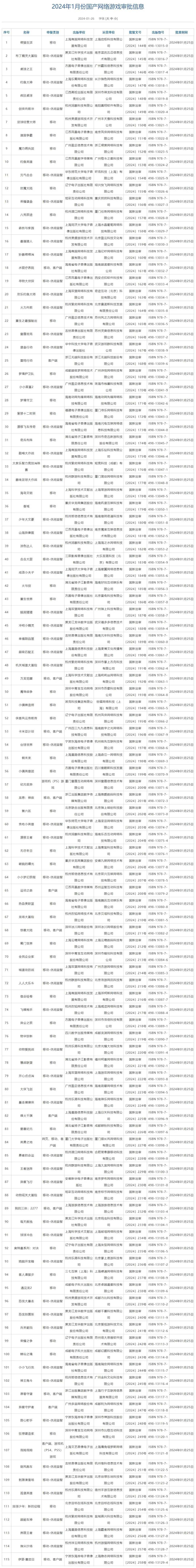 以下是版号完整名单: