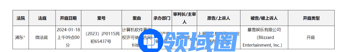 上海高级人民法院网站显示,原定于1月18日开庭的上海网之易网络科技发展有限公司(以下简称“上海网之易”)诉暴雪娱乐有限公司计算机软件著作许可使用合同纠纷案(【2023】沪0115民初65437号 ),目前显示开庭已取消。