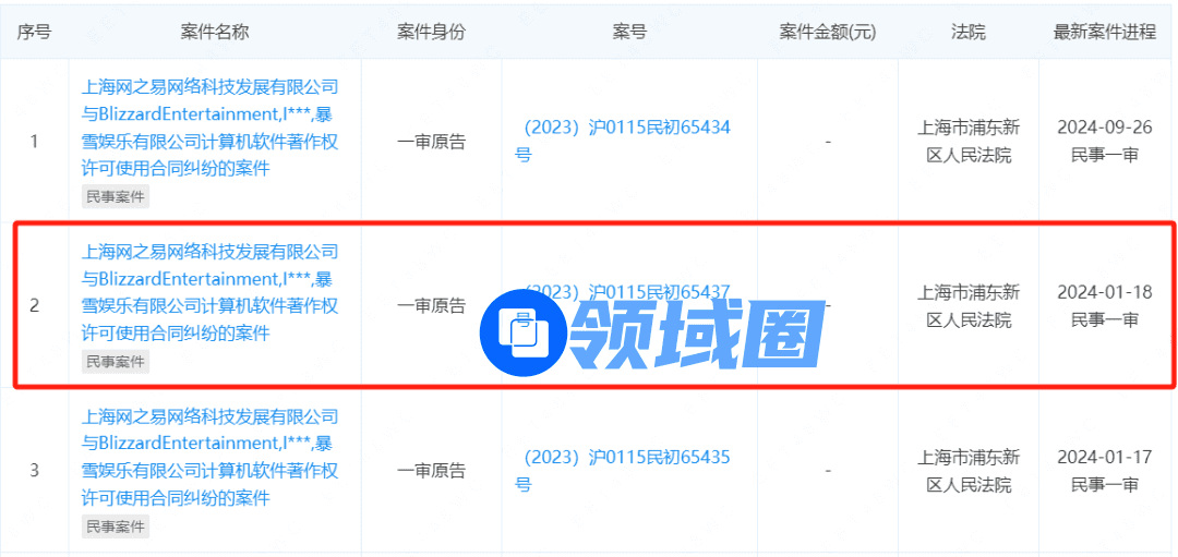据企查查信息显示,围绕着计算机著作权使用许可,上海网之易和暴雪娱乐共有6个相关诉讼,其中有5个均在今年1月开庭审理。
