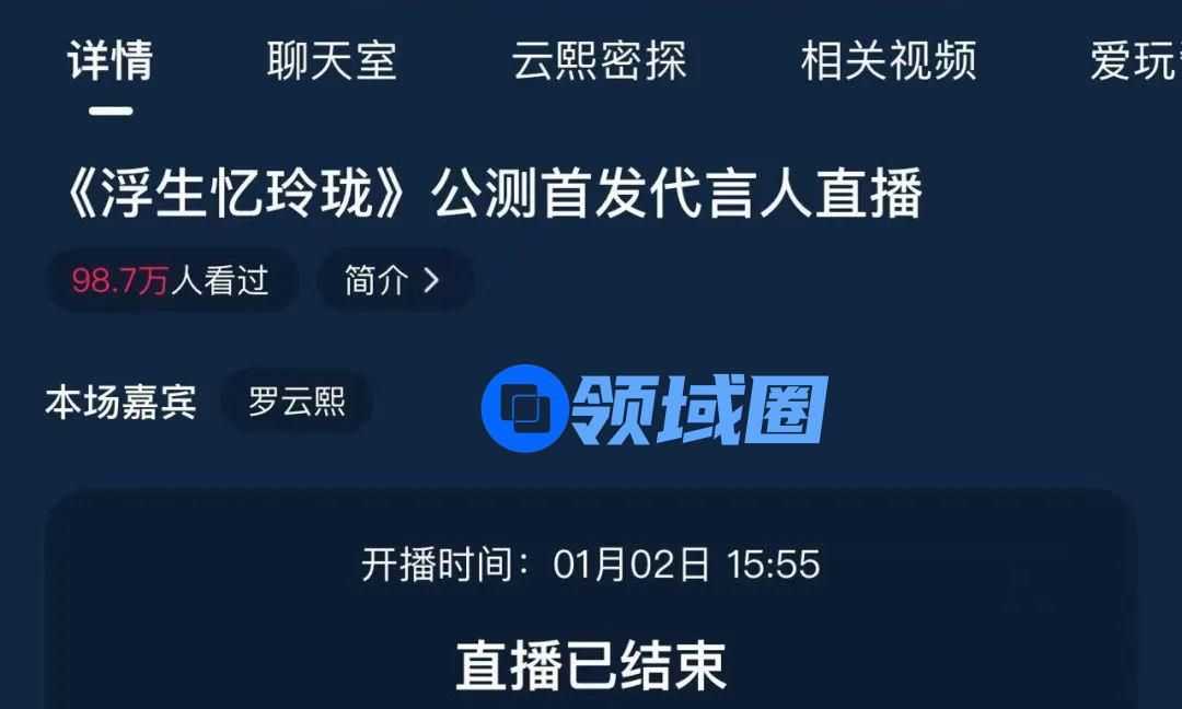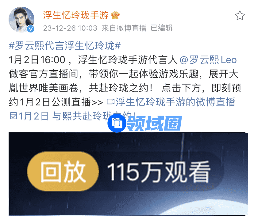其后,友谊时光还围绕游戏内“捏脸”“厨师”等特色玩法,开启直播替罗云熙打开挑战模式,并在“快问快答”环节贴心地满足粉丝需求,展现了罗云熙的俏皮一面。当集齐四条守护线索关键词后,罗云熙也揭开了终极福利。据统计, 微博、腾讯视频双平台播放量超200万,登上微博直播榜榜首,随着直播进行,#罗云熙空降浮生忆玲珑#词条也相应登上微博热搜。