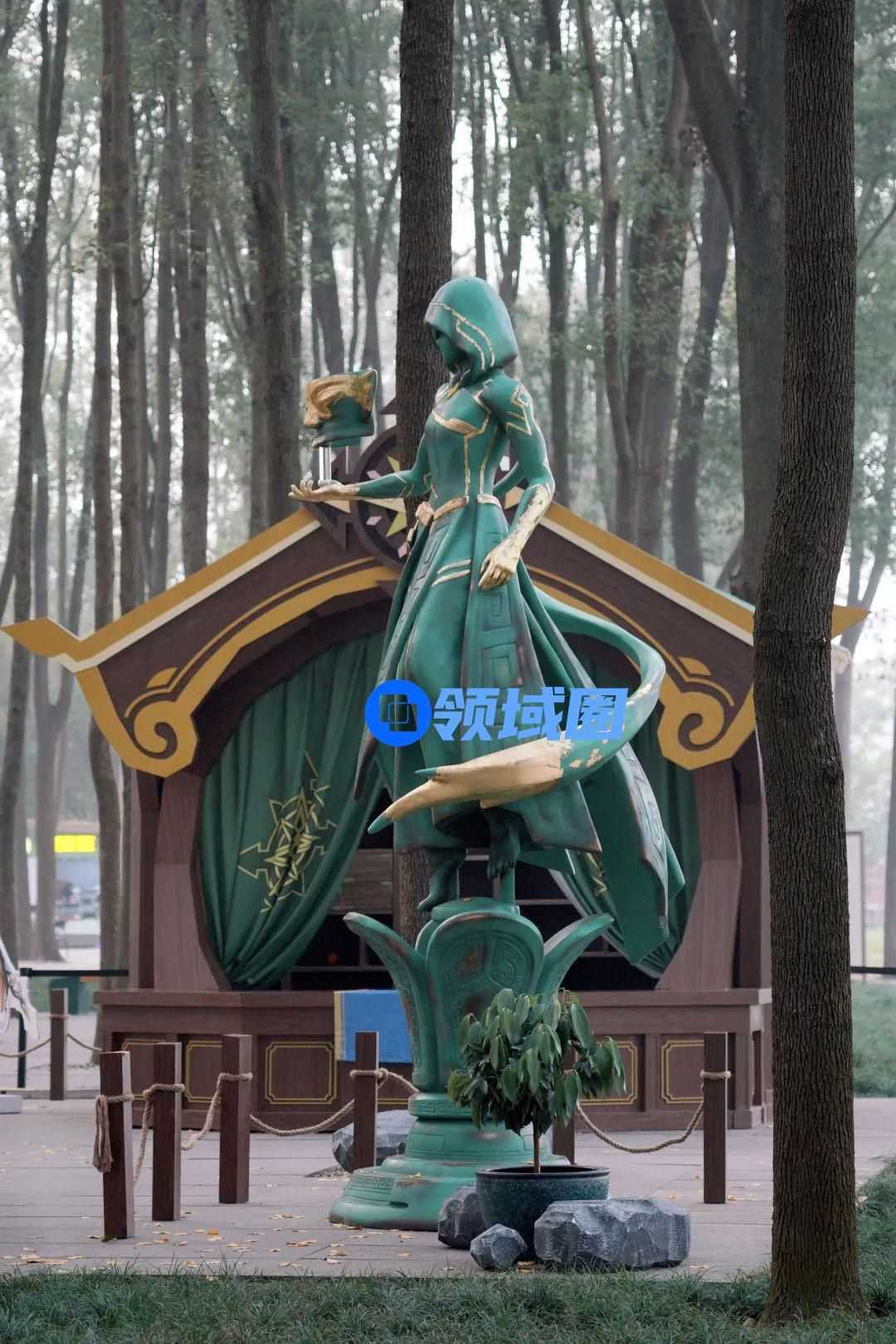 要论此次活动最吸引眼球的,还得是一比一复刻了尘歌壶中的“帝君”钟离铜像“悠古金面”,和游戏中一样,雕像的质地为模仿三星堆的青铜,更完美再现了游戏中飘逸潇洒的钟离手中悬浮的三星堆鎏金青铜面具。神采奕奕的造型,让不少来到现场的旅行者大呼:“要是出手办我必买!”