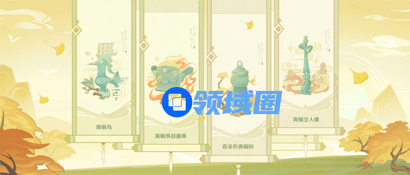 在《原神》游戏之内,结合三星堆青铜器风格所设计的限定摆设——奇景铜像“悠古金面”,提供给全球玩家的《原神》玩家限时领取。这款铜像以“岩王帝君”为形,“帝君”手持华贵金面,金面型制肃穆轩昂,纹饰璀璨夺目,似在诉说着某段玄奇史事。