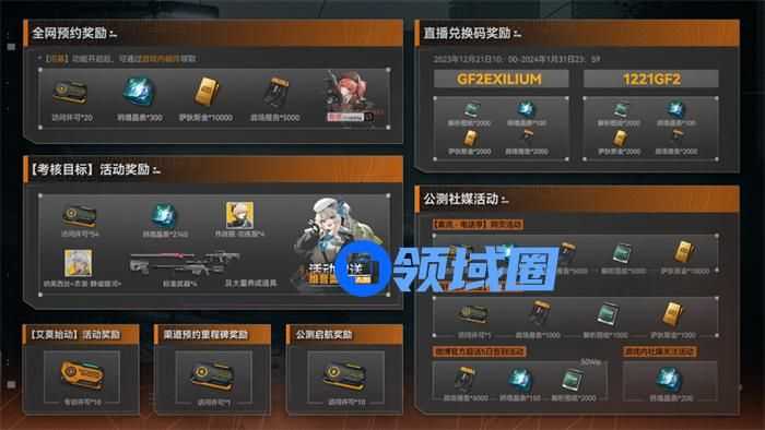 除了以上福利外,《少女前线2:追放》制作组还投送了大量公测福利活动。首先是刚刚提到的游戏全网预约奖励,预约数达成150万即可解锁全服奖励坍塌晶条x300,目前看来这个奖励是指定到手的。其次,玩家们只要关注官方微博【少女前线2-追放】和官方微信公众号【少女前线2追放】,就可获取坍塌晶条x200。