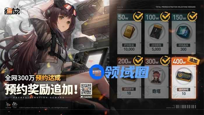 值得注意的是,《少女前线2:追放》还在各大平台开放了平台预约里程碑奖励,完成相应预约目标后即可获取访问许可x1。从目前平台数据来看,游戏预约奖励均已达成。这个额外的1抽,指挥官们也可以直接拿到,感兴趣的朋友们就抓紧时间赶快下载吧。