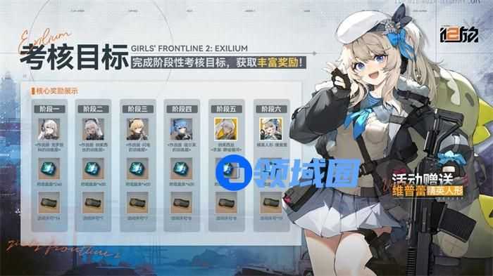 在公测后开放的【考核目标】活动中,完成阶段性考核目标,即可获得精英人形维普蕾、标准人形奇塔、纳美西丝<衣装·静谧暗河>,以及四小强闪电、克罗丽科、纳美西丝和寇尔芙的训练服。这可是获取人形和皮肤的好机会~福利多多,此时不拿更待何时!