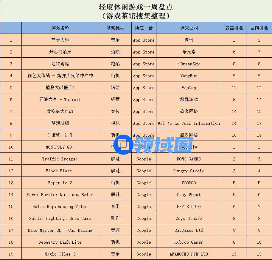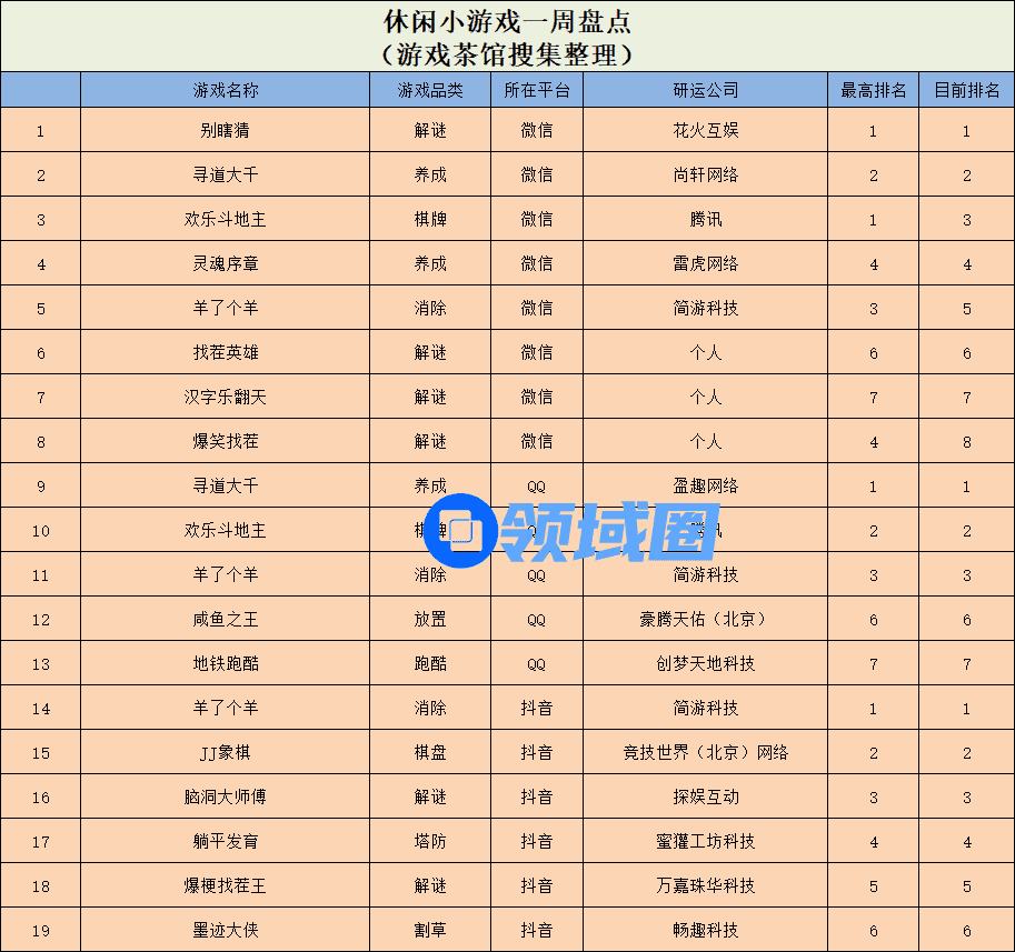 休闲新游周报每周统计微信小游戏、QQ小游戏、抖音小游戏、硬核小游戏以及App Store和Google Play上的新游爆款,并按照分类制作表格,将游戏排名情况等信息公布,希望给到行业同侪帮助。
