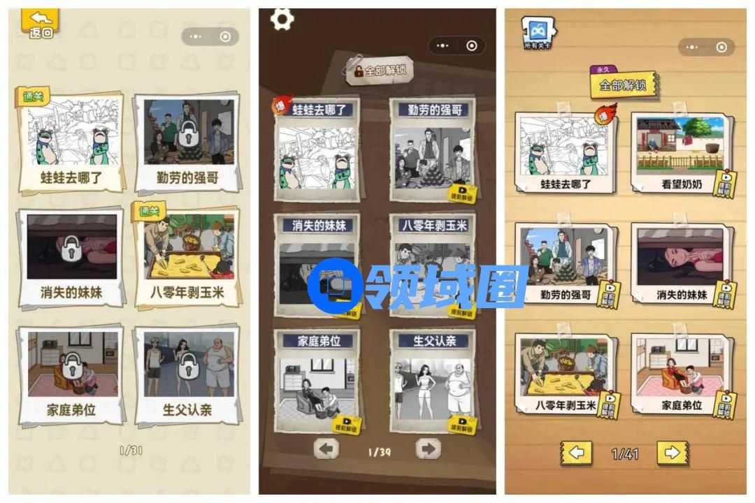 其中图像解谜类游戏,大多会在每个关卡提供一张图片,玩家需要根据图片内容,完成关卡任务:或是找到对应的东西(与场景不符的东西、物品瑕疵)、或是拖拽屏幕完成拯救美女之类的目标,类似于本周登上微信人气榜首的《别瞎猜》、第6名的《找茬英雄》和第8名的《爆笑找茬》。