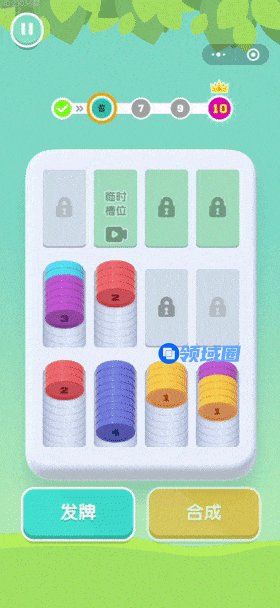 同时,堆叠消除游戏也开始赢得更多小游戏玩家的青睐。此前,《超级解压管》在抖音直播大火,从玩法上看,该游戏是一款融合了合成玩法的解谜游戏,玩家需要将游戏中的同色数字块放到同一槽位中,当槽位被同一数字填满,即可合成升级为一个更高的数字色块。随着游戏的持续推进,槽位数量也会随即解锁,因而合成的目标数字越大,需要处理的色块数量和合成级别就更多,游戏难度也越来越大。