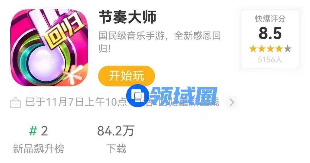 手游方面,本周的热度关键词依然是音游。国内,腾讯旗下音游《节奏大师》在回归后,持续稳坐iOS免费游戏榜单TOP2。2021年2月5日,火极一时的音游《节奏大师》宣布暂时停运;2023年11月7日,该游戏在与玩家们阔别两年之后,终于正式回归。经典产品重新上线,无数网友高呼“爷青回”。