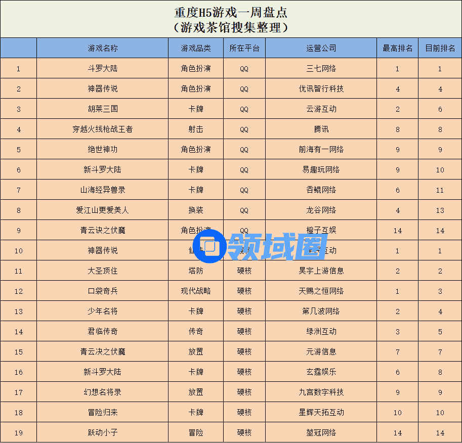 重度H5游戏:《斗罗大陆》登顶,《青云决之伏魔》多榜有名