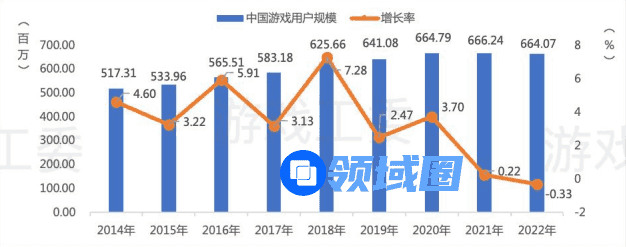 可以发现,过去几年,一面是游戏直播行业齐步大规模扩展,另一面,移动游戏玩家却突然不增反降。根据伽马数据,2022年,中国游戏用户规模为6.64亿人,同比下降0.33%,用户规模在10年以来首次出现下降。