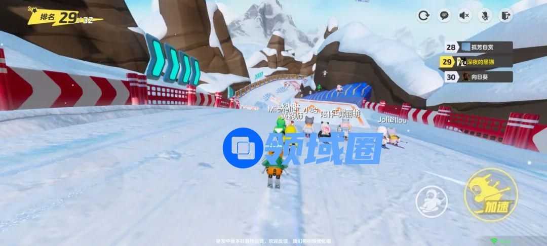 一同引入的还有以滑雪玩法为主的“极限竞速”,需要玩家一边躲避障碍,一边同场较量。利用高台和加速板虽然能够快速提升速度,但如果一味加速,在躲避障碍物和转弯的时候常常会失控撞墙,这就需要玩家有一定的节奏把控。