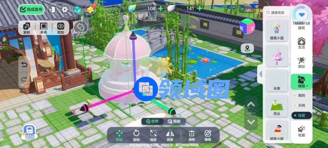 不擅长创作的玩家,可以使用其他玩家已经做好的模块,实现一键建造,极大降低了家园建造的上手门槛。
