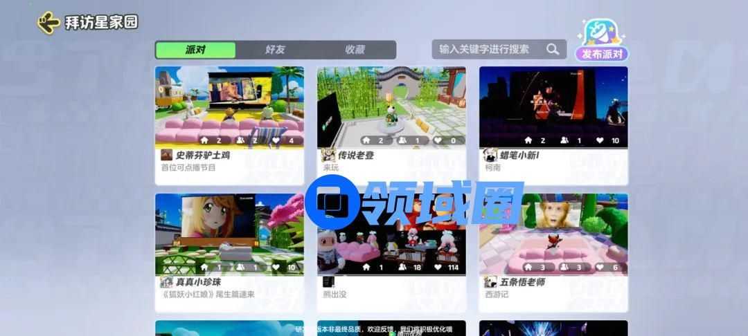 星家园的DIY建造充分满足了玩家自我创作的欲望,定制化的个性设计有利于玩家的自发展示和自我表达。而借由派对功能,玩家能够进一步与其他玩家进行分享。