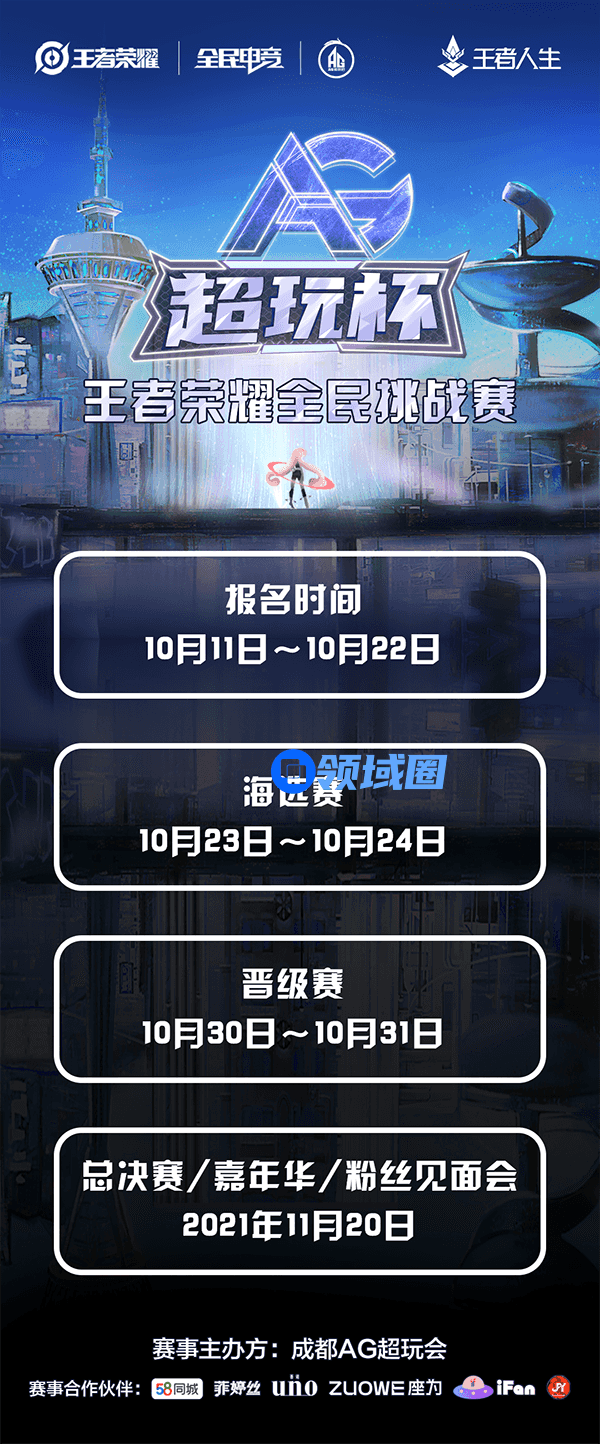 本届AG超玩杯王者荣耀全民挑战赛不仅是广大玩家秀出操作、展现自我的机会,更是给潜力新星接触职业比赛舞台、圆梦电竞未来的大好舞台,还不快快加入进来?为了能让全国更多玩家获得参赛机会,本届赛事将分为“南区”和“北区”两大赛区,在10月11日至10月22日期间,玩家只需进入“王者人生”APP-赛事专题-线上赛专区,即刻直接参与赛事报名。