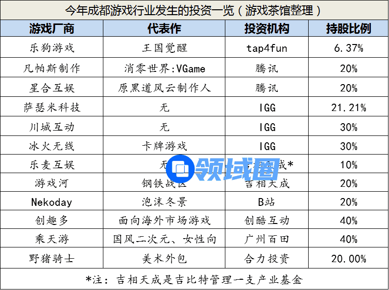 游戏茶馆梳理了今年部分拿到大厂投资的成都研发厂商名单如下: