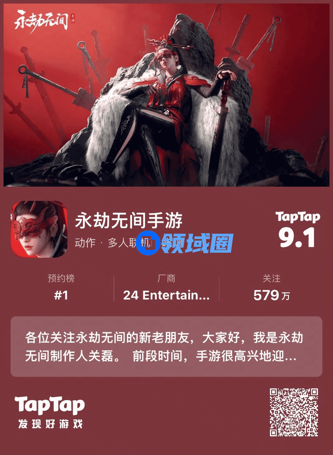 首测热度高涨的同时,《永劫无间》手游的人气、口碑也迅速攀升,截至目前全网预约人数已超过2500万人,其中TapTap平台预约人数超过566万,位列预约榜第一,打破网易多项新游首测记录。