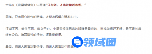在文章的最后,他们表示“只有用心制作的游戏,才能永远留在玩家的心中”,这句话让许多玩家都感同身受。