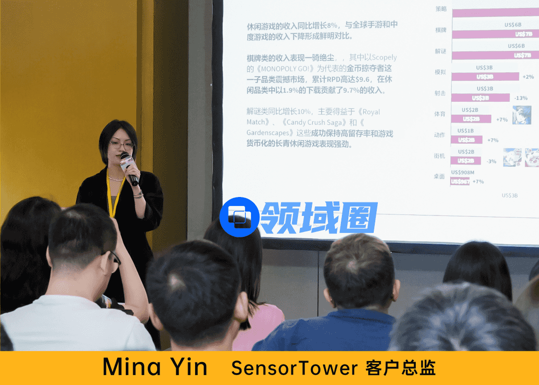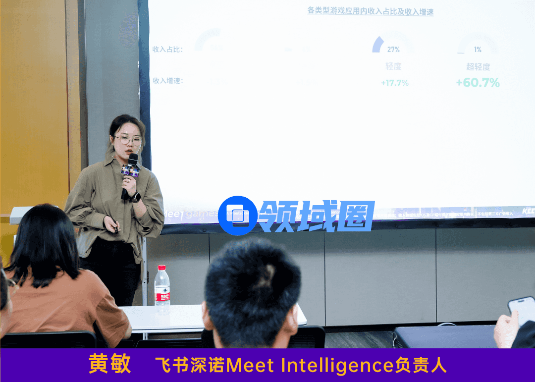 随后,来自飞书深诺及出海生态行业上下游的专家从游戏海外发行各阶段面临的痛点和挑战带来了分享。SensorTower客户总监Mina、飞书深诺Meet Intelligence负责人黄敏分别就2024全球市场趋势洞察和游戏机会赛道的带来分享,帮助出海游戏厂商洞察全球游戏市场前沿玩法,深入了解玩家喜好与诉求变化,提高立项成功率。