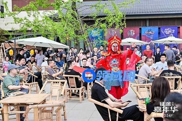 像征途嘉年华这种大型游戏活动落地成都,通过特色IP形象联动当地文化,在创新的互动体验中让玩家和游客对当地产生更深厚的情感连接,自发形成口碑传播,以新场景新模式为地方文旅发展赋能。在活动现场,身着华服手持宫灯的仪仗队,配合精心的场景设计,营造出浓郁的唐风氛围,玩家一踏入东安阁便被引领着穿越时空,进入了盛唐的繁华之中。“清源酒家”里的川剧变脸、征途茶铺的川蜀茶艺,沿途吆喝招揽客人的征途十国美食,将游戏场景化为真实,让玩家与游客畅享有趣舒适的沉浸式游玩体验,同时也能感受到蜀地特色和中华传统文化的魅力。