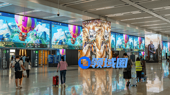 为贴合本次活动主题“少年环游记”,游族还首次在上海虹桥航站楼进行了沉浸式线下营销,活动海报及各大游戏角色立柱震撼呈现,从上海出发,开启环球福利游。