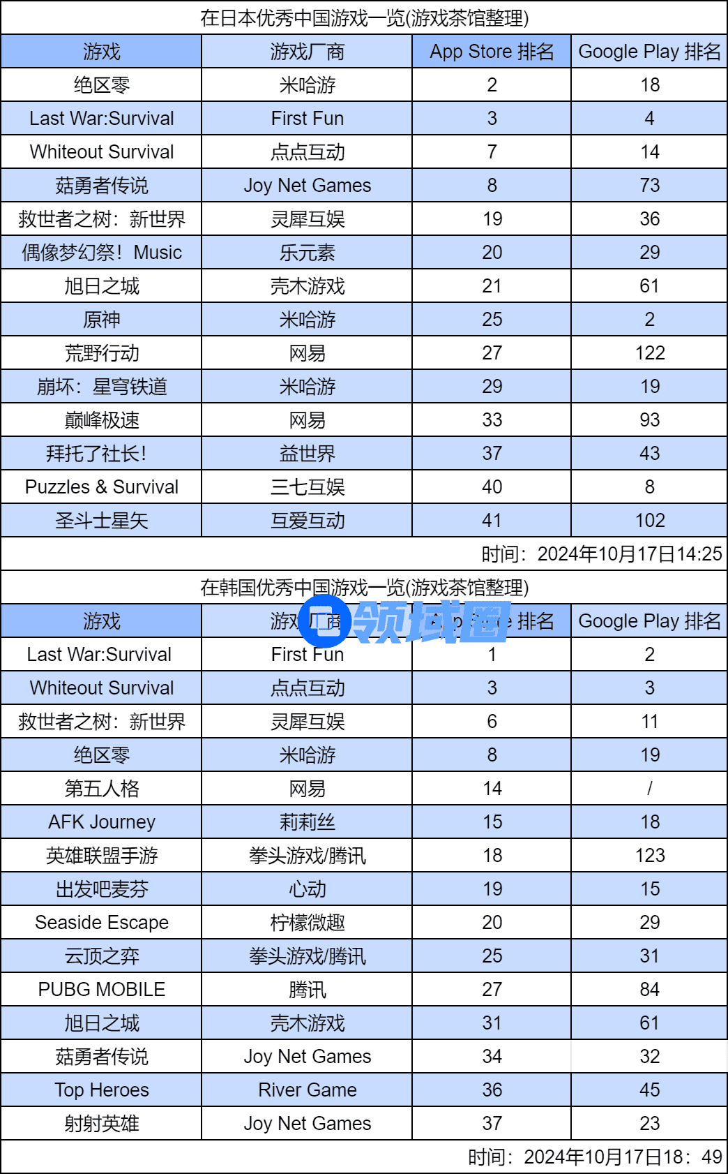 本期日韩出海秀中,《绝区零》与《Last War:Survival》分别是日韩游戏畅销榜最靠前的国产游戏。