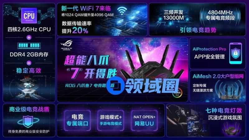 ROG八爪鱼7:作为华硕的旗舰级产品,ROG八爪鱼7不仅拥有强悍的性能和炫酷的外观,还享受12期免息分期付款的优惠。前100名支付的用户,将有机会抢到专属豪礼。以旧换新再享折上85折,以及400元的超额补贴,让这款顶级路由器更加触手可及。