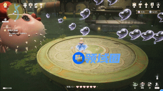 “电力大抢修”章节凸显的主题是“趣味童话”。无论看多少次,我总会被大叫“大事不好了呱”的“呱呱帽蛙”萌到。在城市西北角的福鸣之井,因梦露鱼发狂导致城镇电力缺失,暖暖应邀前往进行大抢修。