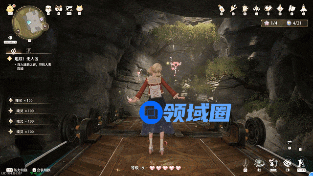 当暖暖被倒下的木柜或魔化物挡住去路时,玩家可以寻找“奇想星”感悟换上相应套装,轻轻一跃或通过魔法攻击开辟道路;而当暖暖拥有更多能力套装后,在大喵视野的提示下,也能通过能力套装采集更多资源,从而解锁图纸、制作新的衣物。