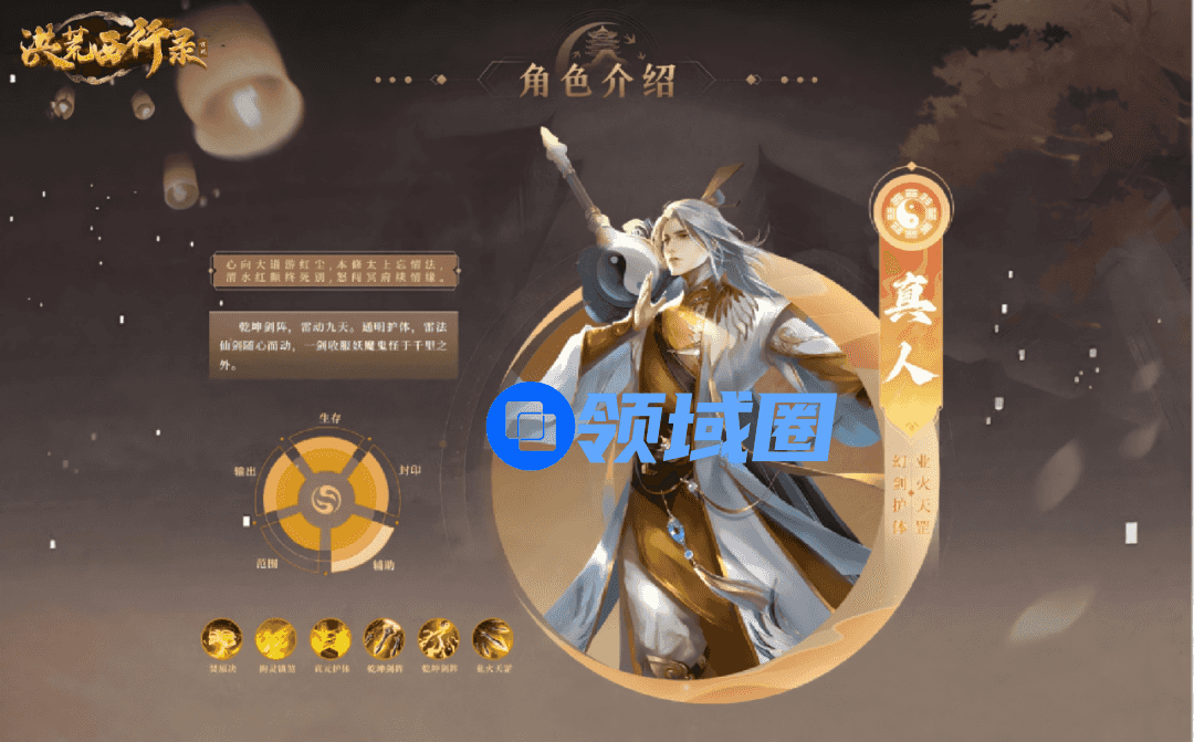 在以上古东方神话及山海经为背景构筑的《洪荒西行录》中,道教文化成为游戏角色的重要灵感来源。《洪荒西行录》以太乙真人为原型,创造“真人”这一职业角色,不仅外观上融合道教服饰与法术特效,更在性格设定、技能设计上体现道教的精髓与智慧。